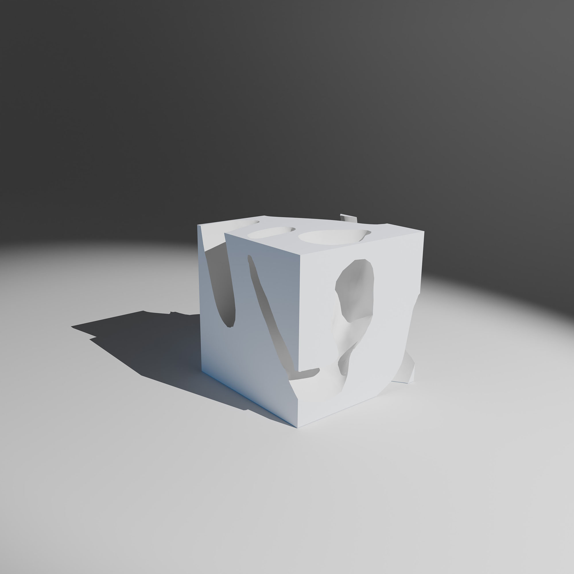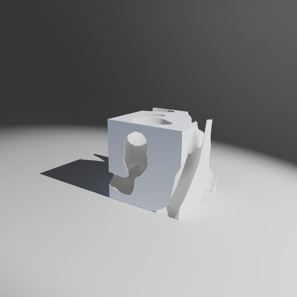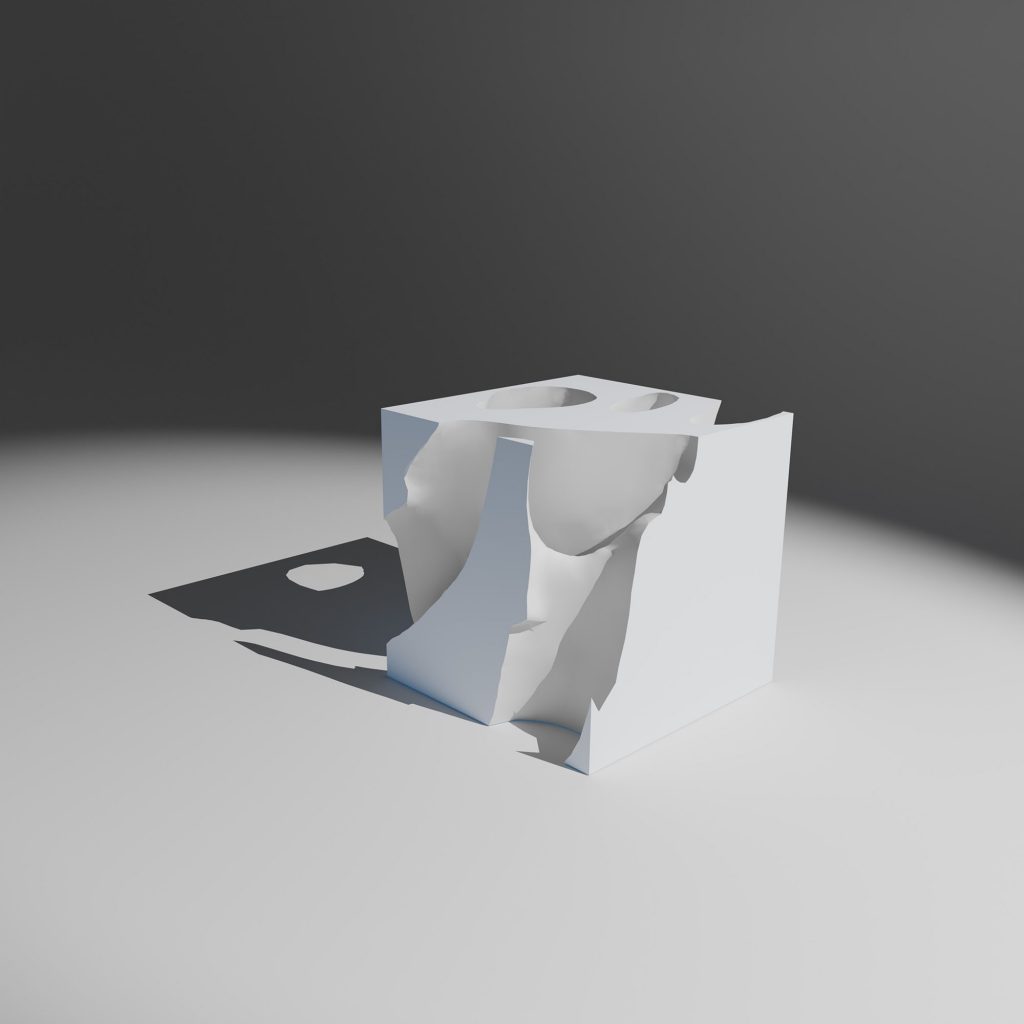 Within a cubic Cartesian model, the negative space of an immaterial ethical asset is extracted and materialized through 3D printing. What was once intangible becomes physical, visible, exchangeable. Yet the value itself appears not as presence, but as void: a form revealed through what is missing.