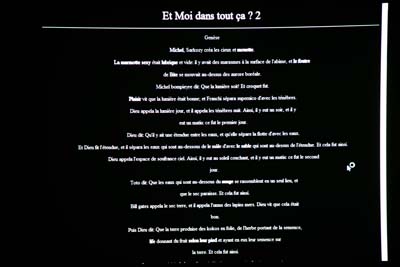 "It is a first performance of that kind, a first performance as well for the work of Maurice Benayoun and for the European School of Visual Arts (EESI) and the young digital art it represents.