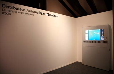A first performance for the ÉESI, after a series of exhibitions - Peter Greenaway, Guillaume Pinard, Pierrick Sorin, Paul Armand Gette, Fabricio Plessi, Toni Brown…- which is not only welcoming Maurice Benayoun on the site of the school but which has also conceived, along with the artist, a pedagogy opening on the digital world; thus having previously contributed in a concrete way to the production of his surprising Emotion Vending Machine".