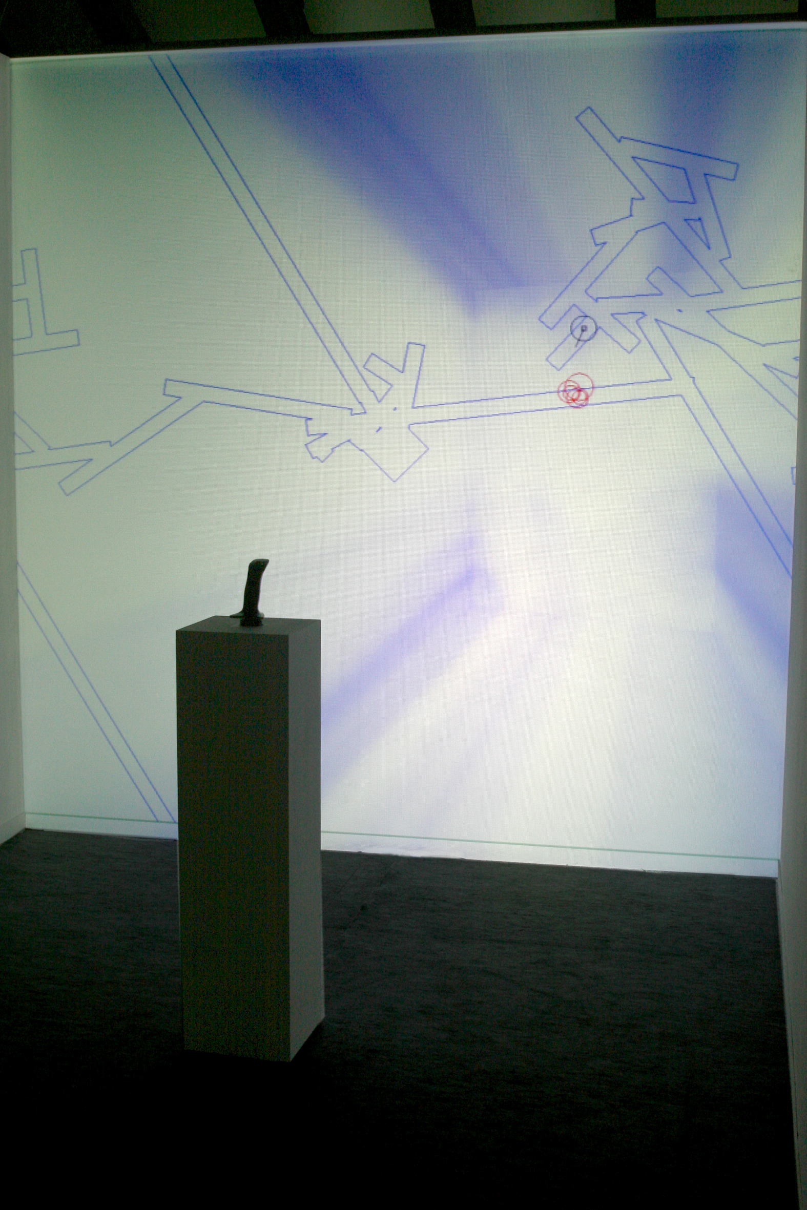 à creuser de couloirs labyrinthiques. Les nuages se voient découpés en temps réel, au gré des déplacements du spectateur. Cette architecture