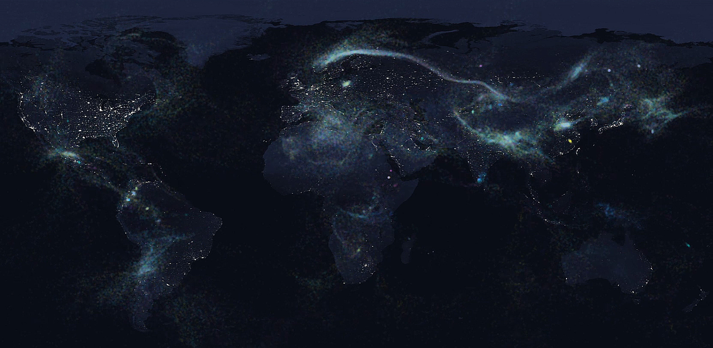 On the screen, the emotions of the world move and spread around the planet according to real-time winds, creating chance arabesques on the world map, forming meandered natural movements similar to the brushstrokes of Chinese calligraphy and ink drawing. Created through the automatic analysis of Internet data representing the emotions of 3200 of the world’s largest cities, the work understands the Internet as a de facto ‘World Nervous System’, or the harbinger of the planet’s emotional sensitivities. Emotion Winds, is the last avatar of the Mechanics of Emotions series of artworks. Beginning in 2005, with MoBen’s solo show, e-Market, Emotional Market, at the 18 on the Bund Gallery in Shanghai, Mechanics of Emotions considers the ‘World Nervous System’ as reflecting the feelings and the emotions of humankind. Mechanics of Emotions includes installations, digital sculptures, musical performances, an Emotion Vending Machine, Interactive installations, and Urban Screens displayed all around the world (New, York, Paris, Berlin, Dubai, Sydney, Melbourne, Seoul, Hong Kong… and Shanghai). Emotion Winds expands the running theme of this far-reaching oeuvre, namely the relationship between ‘big data’ and what MoBen describes as ‘the human factor’ - that which makes something tangibly human. The works in the series utilize techniques from economics to measure human sensitivities or feelings, looking at ways in which conventional forms of the quantification of Big Data can give credence to systems detached from, or playing with, the very tenor of human emotions. In other works in the Mechanics of Emotions series, stock market data has been directly compared to information related to real human affects. In Emotion Winds, these same human emotions are overlaid and combined with graphic representations of natural phenomena such as global wind cycles, and a poetic visualization finally emerges of Internet emotion streams from different cities across the world being taken and shared by the power of the planet’s real winds. This new work reflects the aesthetic impact of Asian culture on MoBen’s practice since his first installations in Asia (China, Korea, Japan…), and his recent move to Hong Kong. Sound composition by Jean-Baptiste Barrière engineering and Implementation: Wang Xiao |