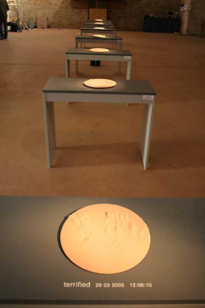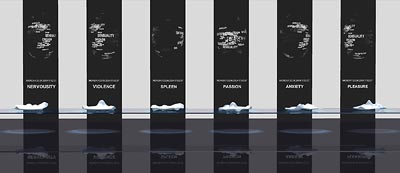 | Deflated emotional distorsions of the globe. The Frozen Feelings are 3D snap shots of the world's emotions. Digitally carved into different kind of materials. They are built after the World Emotion Maps. |