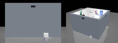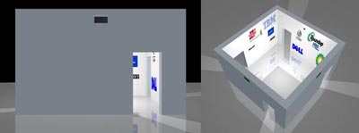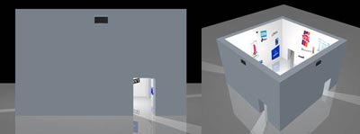In the main gallery of a contemporary art museum. A cubic room de 4 x 4 x 3m.No ceiling. The top of the box is open. This room is surrounded by 4 walls. In the middle of each wall : a door. At the beginning the door height is 1m80. Each wall has hole in the middle with a video projector projecting all over the opposite wall inside the room. All the walls have an image projected. The surface of the walls (4x 9m²) is sold by auction on the Internet. Any company or sponsor can pay to have their logo or name projected on the wall. The size and the duration of the property depends on the money paid. So the walls are covered by logos of different companies. This is the fusion of sponsorship and Artwork. Half of the money goes to the museum and the other half goes to the artist. Outside the room a plasma screen displays in real time the details of the artist's bank account revealing the use of the money including any aspect of the daily survival process (eating, sleeping, having fun, taxes etc.). When the price of the square meter of projected surface reaches a certain amount of money, the artist comes and, by using plaster, reduces the size of the doors in order to enlarge the surface for sale. So far that after a while the doors have become so tiny that nobody can get in and see the projected brands. |