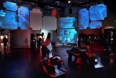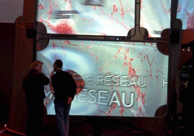 Exposition annuelle Conception et réalisation du dispositif central, en interaction totale avec le visiteur selon des principes d'"architecture organique" En collaboration avec ZendCo Créée par Maurice Benayoun avec l'équipe de Z-A production, le vidéaste Yan Minh, Corinne Lambert, Jean-Baptiste Barrière, Raymond Audemard, et La Kitchen, la Membrane est l'élément central de l'exposition l'Homme transformé. Maurice Benayoun la décrit ainsi : "La membrane est un dispositif organique constitué d'un ensemble de surfaces virtuelles souples, mouvantes qui respirent au rythme de l'exposition. Contrairement aux surfaces physiques, celles-ci peuvent s'interpénétrer. La proximité du visiteur repousse ou attire la première surface pour laisser apparaître la seconde qui évolue à son tour pour faire entrevoir la suivante et ainsi de suite. Le visiteur pénètre ainsi la profondeur de l'information, textes, images et vidéo. Si le visiteur s'immobilise, la couche suivante s'élargit, développant le sujet. S'il recule, elle est tout d'abord attirée par lui avant de se rétracter comme si elle avait atteint sa limite d'élasticité. Sur les surfaces de la Membrane l'information se restructure de manière dynamique, comme attirée et nourrie par la présence du visiteur. La Membrane est le premier exemple d'interface organique pour une scénographie interactive" |