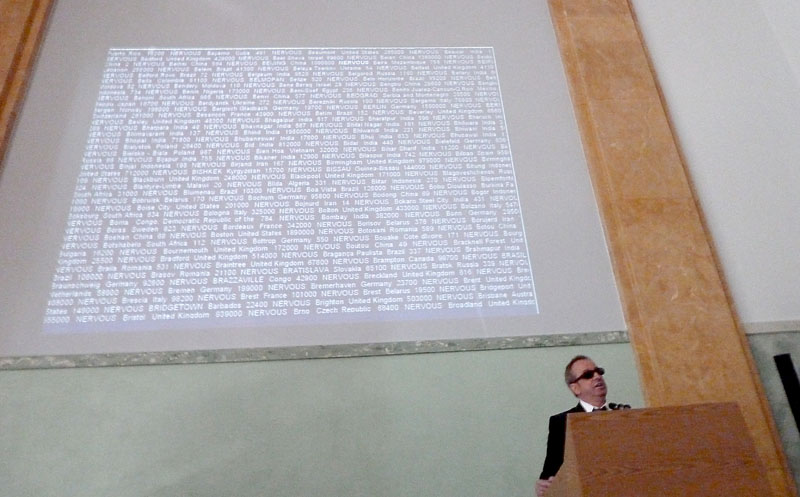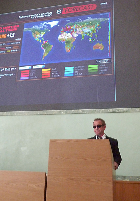 S'appuyant sur la base documentaire de la Mécanique des Emotions. Mo Ben propose de "sauver le capitalisme financier" en présentant Emotion Forecast et le potentiel économique de la donnée émotionnelle planétaire. La veille, il présentait les mêmes documents comme autant de témoignages de sa pratique artistique. |